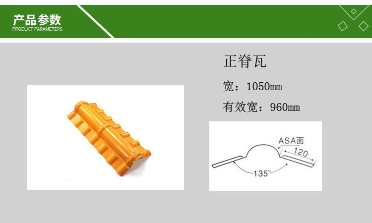 - ※ 當前位置:首頁 - 產品中心 - 合成樹脂瓦配件-正脊瓦